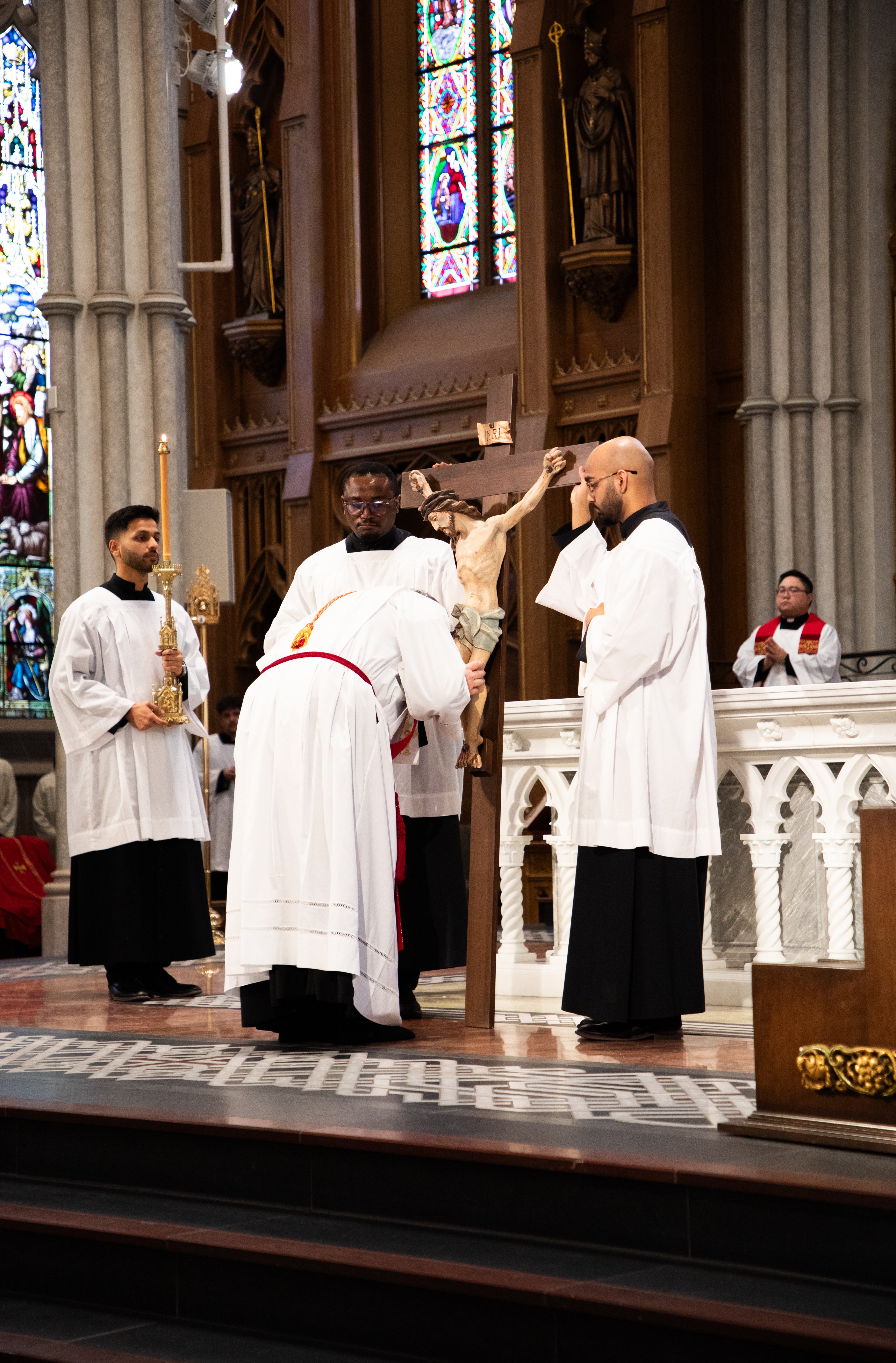 His Eminence Frank Cardinal Leo presided at the Good Friday service at St. Michael’s Cathedral Basilica at 3 p.m., the hour at which Jesus “breathed his last.”