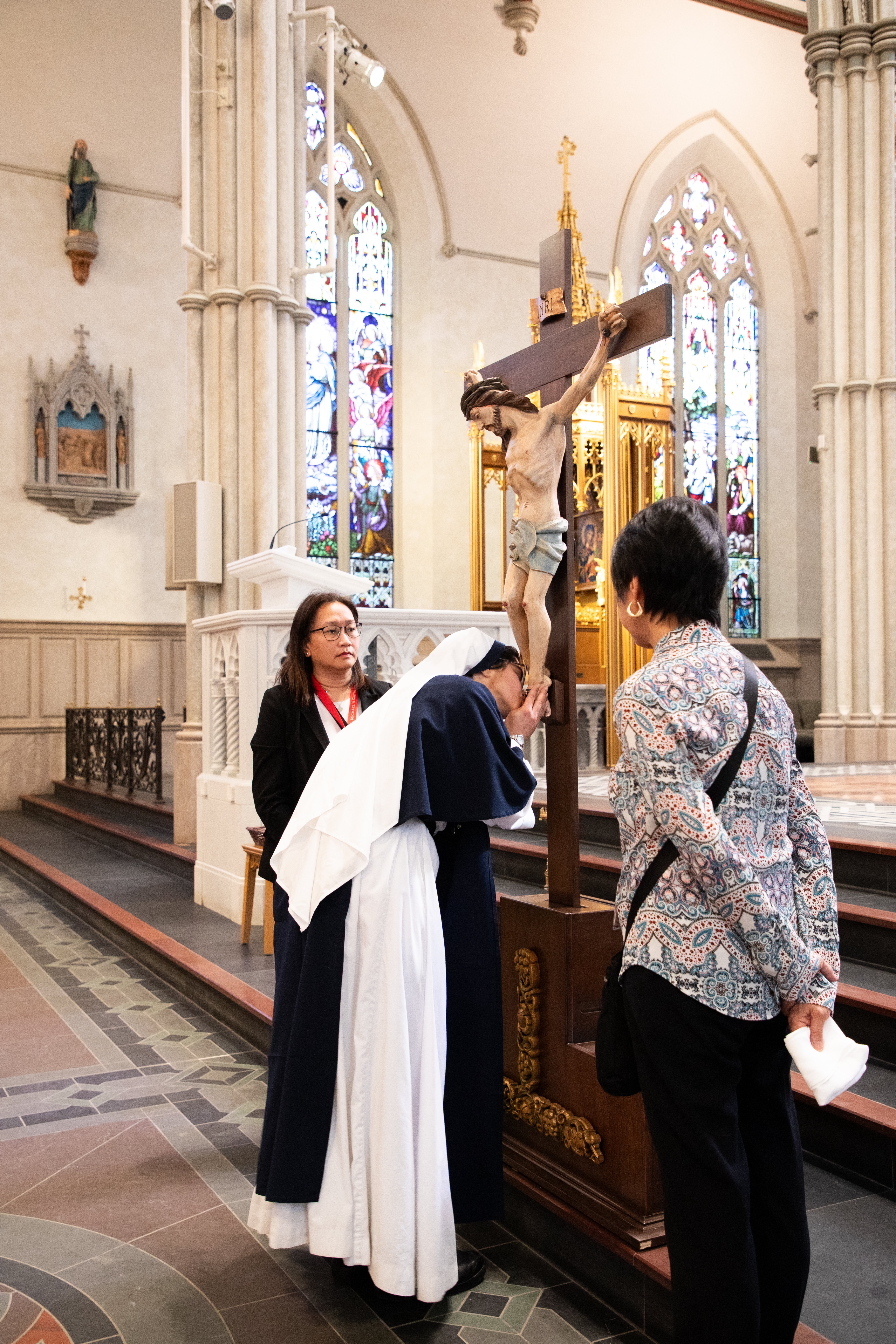 The Veneration of the Cross is a central part of today’s liturgy. Holy Communion is distributed towards the end of the Good Friday service using hosts consecrated on Holy Thursday, connecting us from the Last Supper to the Our Lord’s ultimate, loving sacrifice.